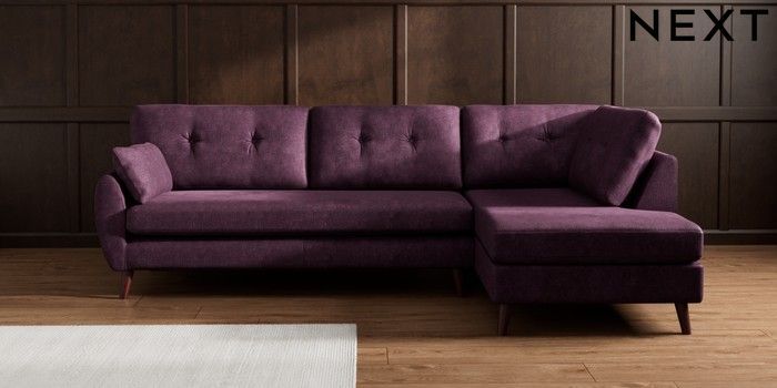 7.3.1 Buy Wilson Buttoned Back Large Corner Chaise - Right Hand Plush Chenille Dark Plum Purple Retro Tapered - Dark Brown from the Seasons online shop Click here to use our website with more accessibility support, for example screen readers
