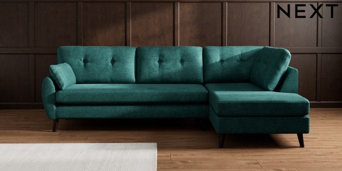 7.3.1 Buy Wilson Buttoned Back Large Corner Chaise - Right Hand Plush Chenille Dark Teal Green Retro Tapered - Dark from the Seasons online shop Click here to use our website with more accessibility support, for example screen readers