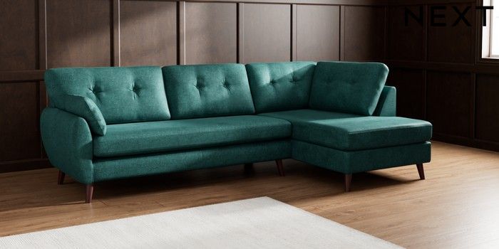 7.3.1 Buy Wilson Buttoned Back Large Corner Chaise - Right Hand Plush Chenille Dark Teal Green Retro Tapered - Dark Brown from the Seasons online shop Click here to use our website with more accessibility support, for example screen readers