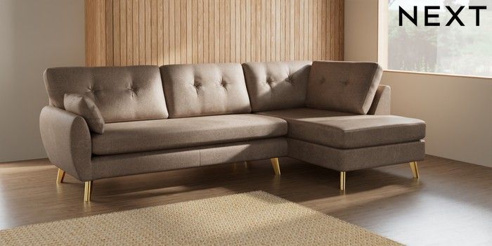 7.3.1 Buy Wilson Buttoned Back Large Corner Chaise - Right Hand Plush Chenille Mid Natural Metal Tapered - Gold from the Seasons online shop Click here to use our website with more accessibility support, for example screen readers