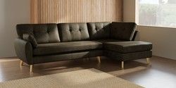 7.3.1 Buy Wilson Buttoned Back Large Corner Chaise - Right Hand Plush Chenille Moss Green Metal Tapered - Gold from the Seasons online shop Click here to use our website with more accessibility support, for example screen readers