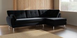 7.3.1 Buy Wilson Buttoned Back Large Corner Chaise - Right Hand Plush Velvet Easy Clean Charcoal Grey Metal Tapered - Chrome from the Seasons online shop Click here to use our website with more accessibility support, for example screen readers