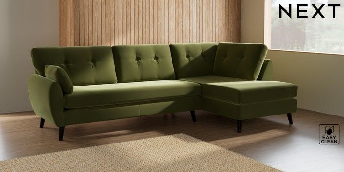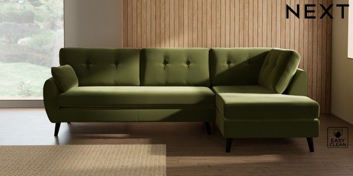 7.3.1 Buy Wilson Buttoned Back Large Corner Chaise - Right Hand Plush Velvet Easy Clean Mid Olive Green Retro Tapered - Dark from the Seasons online shop Click here to use our website with more accessibility support, for example screen readers