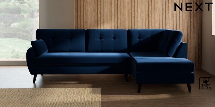 7.3.1 Buy Wilson Buttoned Back Large Corner Chaise - Right Hand Plush Velvet Easy Clean Navy Blue Retro Tapered - Dark from the Seasons online shop Click here to use our website with more accessibility support, for example screen readers