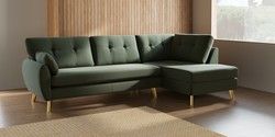7.3.1 Buy Wilson Buttoned Back Large Corner Chaise - Right Hand Relaxed Linen Look Dark Green Metal Tapered - Gold from the Seasons online shop