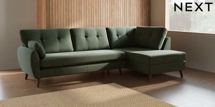 7.3.1 Buy Wilson Buttoned Back Large Corner Chaise - Right Hand Relaxed Linen Look Dark Green Retro Tapered - Mid from the Seasons online shop Click here to use our website with more accessibility support, for example screen readers