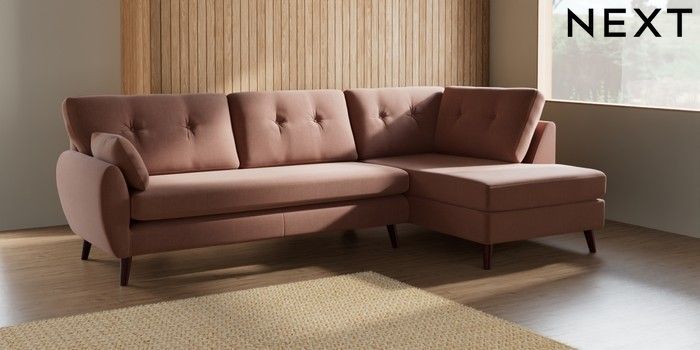 7.3.1 Buy Wilson Buttoned Back Large Corner Chaise - Right Hand Relaxed Linen Look Light Rust Brown Retro Tapered - Dark Brown from the Seasons online shop Click here to use our website with more accessibility support, for example screen readers