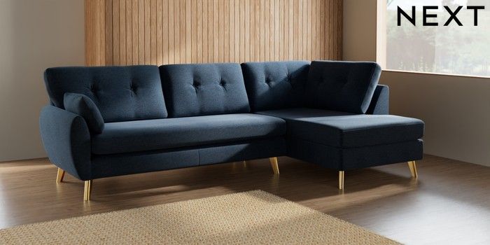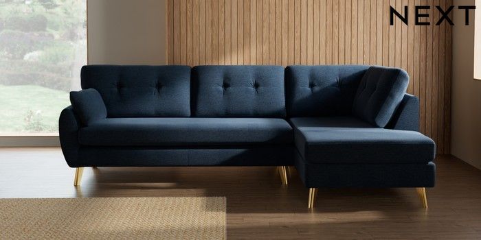 7.3.1 Buy Wilson Buttoned Back Large Corner Chaise - Right Hand Ripple Chenille Dark Blue Metal Tapered - Gold from the Seasons online shop Click here to use our website with more accessibility support, for example screen readers