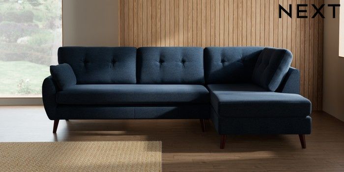 7.3.1 Buy Wilson Buttoned Back Large Corner Chaise - Right Hand Ripple Chenille Dark Blue Retro Tapered - Dark Brown from the Seasons online shop Click here to use our website with more accessibility support, for example screen readers