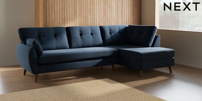 7.3.1 Buy Wilson Buttoned Back Large Corner Chaise - Right Hand Ripple Chenille Dark Blue Retro Tapered - Mid from the Seasons online shop Click here to use our website with more accessibility support, for example screen readers
