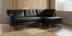 7.3.1 Buy Wilson Buttoned Back Large Corner Chaise - Right Hand Tweedy Blend Easy Clean Charcoal Grey Metal Tapered - Gold from the Seasons online shop