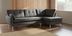 7.3.1 Buy Wilson Buttoned Back Large Corner Chaise - Right Hand Tweedy Blend Easy Clean Dark Grey Metal Tapered - Chrome from the Seasons online shop Click here to use our website with more accessibility support, for example screen readers