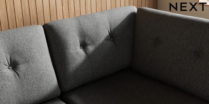 7.3.1 Buy Wilson Buttoned Back Large Corner Chaise - Right Hand Tweedy Chenille Dark Grey Retro Tapered - Dark from the Seasons online shop Click here to use our website with more accessibility support, for example screen readers