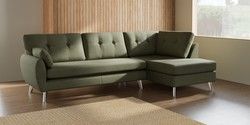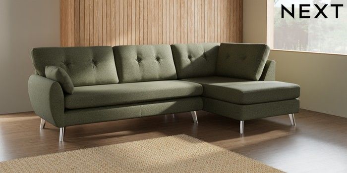 7.3.1 Buy Wilson Buttoned Back Large Corner Chaise - Right Hand Tweedy Chenille Mid Moss Green Metal Tapered - Chrome from the Seasons online shop Click here to use our website with more accessibility support, for example screen readers