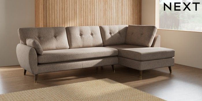 7.3.1 Buy Wilson Buttoned Back Large Corner Chaise - Right Hand Tweedy Chenille Mid Natural Low Retro Tapered Metal Cap - Mid from the Seasons online shop Click here to use our website with more accessibility support, for example screen readers