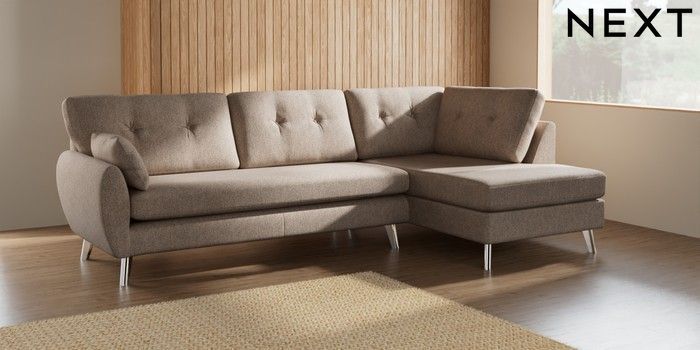 7.3.1 Buy Wilson Buttoned Back Large Corner Chaise - Right Hand Tweedy Chenille Mid Natural Metal Tapered - Chrome from the Seasons online shop Click here to use our website with more accessibility support, for example screen readers