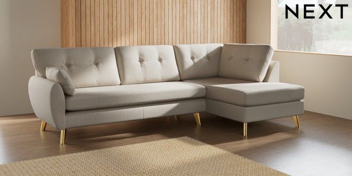 7.3.1 Buy Wilson Buttoned Back Large Corner Chaise - Right Hand Tweedy Chenille Oyster Metal Tapered - Gold from the Seasons online shop Click here to use our website with more accessibility support, for example screen readers