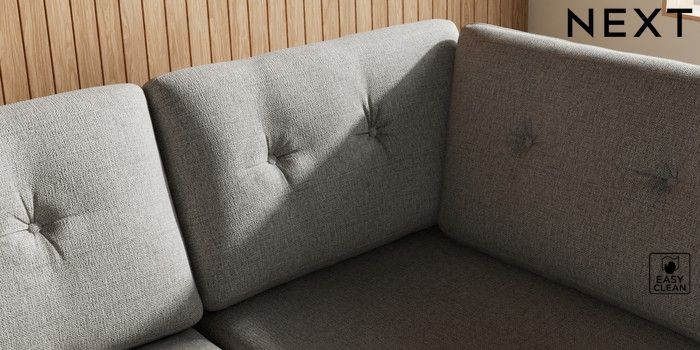 7.3.1 Buy Wilson Buttoned Back Large Corner Chaise - Right Hand Woven Chenille Easy Clean Light Grey Metal Tapered - Gold from the Seasons online shop Click here to use our website with more accessibility support, for example screen readers