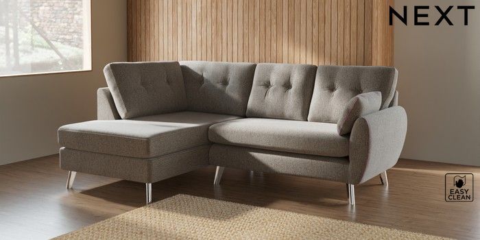 7.3.1 Buy Wilson Buttoned Back Medium Corner Chaise - Left Hand Chunky Boucle Easy Clean Dove Metal Tapered - Chrome from the Seasons online shop Click here to use our website with more accessibility support, for example screen readers