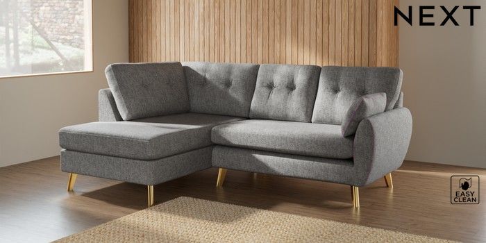 7.3.1 Buy Wilson Buttoned Back Medium Corner Chaise - Left Hand Chunky Boucle Easy Clean Light Grey Metal Tapered - Gold from the Seasons online shop Click here to use our website with more accessibility support, for example screen readers