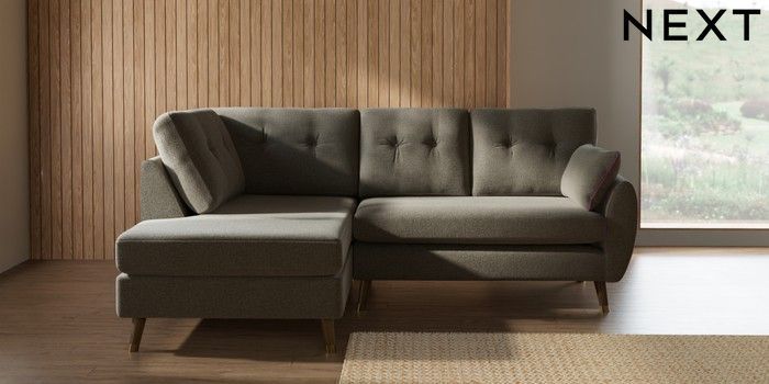 7.3.1 Buy Wilson Buttoned Back Medium Corner Chaise - Left Hand Chunky Marl Light Olive Green Low Retro Tapered Metal Cap - Mid from the Seasons online shop Click here to use our website with more accessibility support, for example screen readers