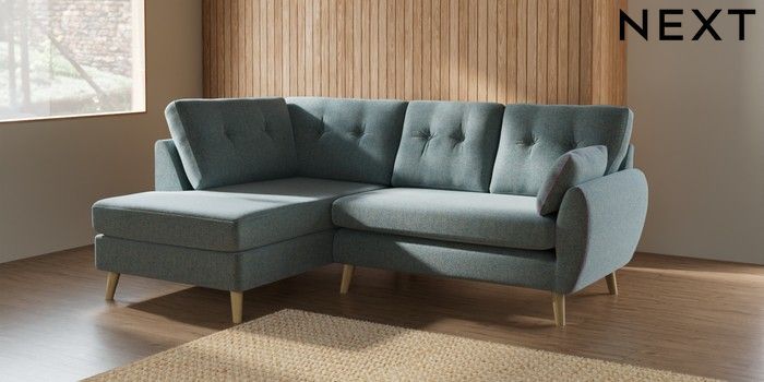 7.2.10 Buy Wilson Buttoned Back Medium Corner Chaise - Left Hand Chunky Marl Mid Blue Retro Tapered - Light from the Seasons online shop Click here to use our website with more accessibility support, for example screen readers