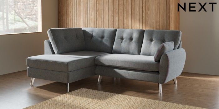 7.2.10 Buy Wilson Buttoned Back Medium Corner Chaise - Left Hand Chunky Marl Mid Grey Metal Tapered - Chrome from the Seasons online shop Click here to use our website with more accessibility support, for example screen readers