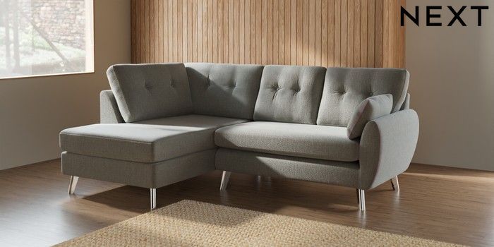 7.2.10 Buy Wilson Buttoned Back Medium Corner Chaise - Left Hand Chunky Texture Dove Metal Tapered - Chrome from the Seasons online shop Click here to use our website with more accessibility support, for example screen readers