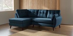 7.3.1 Buy Wilson Buttoned Back Medium Corner Chaise - Left Hand Cotswold Chenille Dark Blue Retro Tapered - Dark Brown from the Seasons online shop Click here to use our website with more accessibility support, for example screen readers