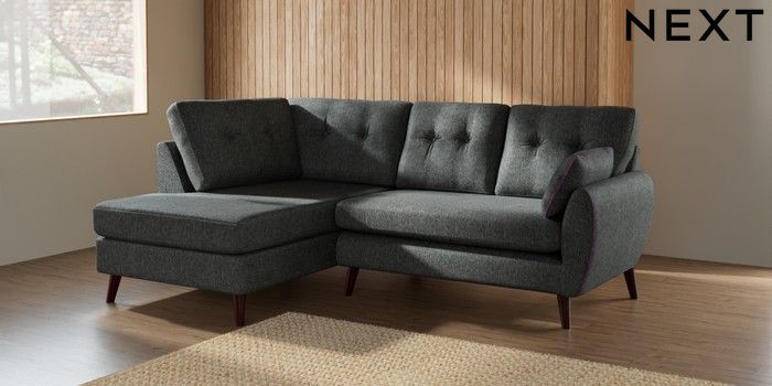 7.2.10 Buy Wilson Buttoned Back Medium Corner Chaise - Left Hand Cotswold Chenille Dark Grey Retro Tapered - Dark Brown from the Seasons online shop Click here to use our website with more accessibility support, for example screen readers