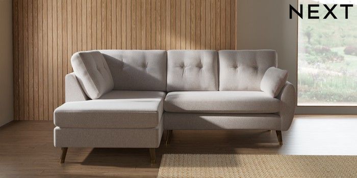 7.3.1 Buy Wilson Buttoned Back Medium Corner Chaise - Left Hand Cotswold Chenille Oyster Low Retro Tapered Metal Cap - Mid from the Seasons online shop Click here to use our website with more accessibility support, for example screen readers