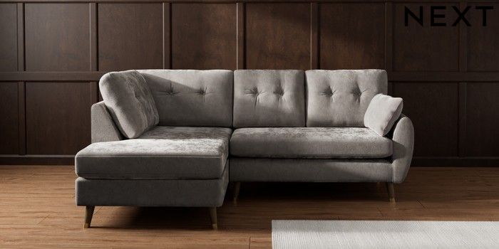 7.3.1 Buy Wilson Buttoned Back Medium Corner Chaise - Left Hand Distressed Velour French Grey Low Retro Tapered Metal Cap - Mid from the Seasons online shop Click here to use our website with more accessibility support, for example screen readers