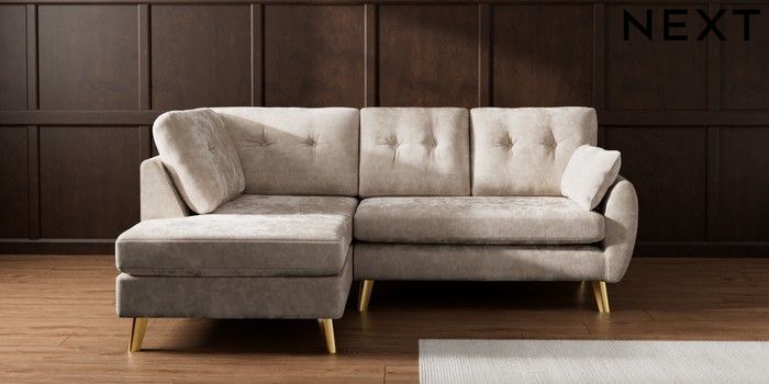 7.3.1 Buy Wilson Buttoned Back Medium Corner Chaise - Left Hand Distressed Velour Mid Natural Metal Tapered - Gold from the Seasons online shop Click here to use our website with more accessibility support, for example screen readers