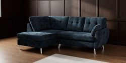 7.3.1 Buy Wilson Buttoned Back Medium Corner Chaise - Left Hand Distressed Velour Midnight Blue Metal Tapered - Chrome from the Seasons online shop Click here to use our website with more accessibility support, for example screen readers