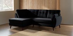 7.3.1 Buy Wilson Buttoned Back Medium Corner Chaise - Left Hand Fine Chenille Easy Clean Black Retro Tapered - Dark Brown from the Seasons online shop Click here to use our website with more accessibility support, for example screen readers
