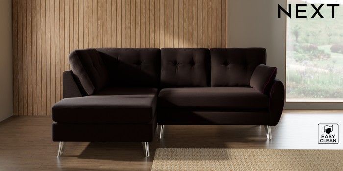 7.3.1 Buy Wilson Buttoned Back Medium Corner Chaise - Left Hand Fine Chenille Easy Clean Chocolate Brown Metal Tapered - Chrome from the Seasons online shop Click here to use our website with more accessibility support, for example screen readers