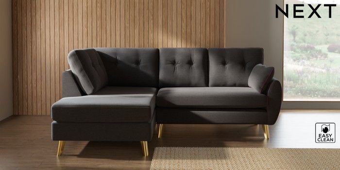 7.3.1 Buy Wilson Buttoned Back Medium Corner Chaise - Left Hand Fine Chenille Easy Clean Dark Smoke Grey Metal Tapered - Gold from the Seasons online shop Click here to use our website with more accessibility support, for example screen readers