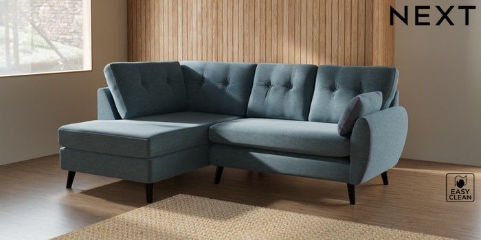 7.2.10 Buy Wilson Buttoned Back Medium Corner Chaise - Left Hand Fine Chenille Easy Clean Mid Blue Retro Tapered - Dark from the Seasons online shop Click here to use our website with more accessibility support, for example screen readers