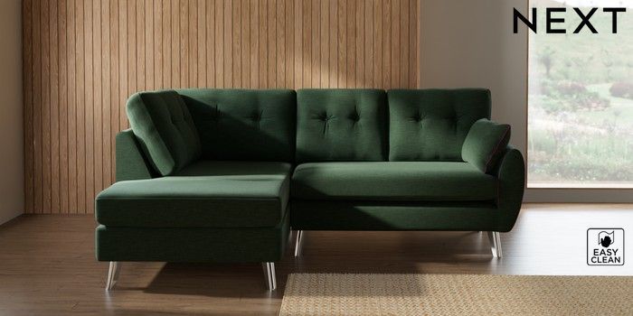 7.3.1 Buy Wilson Buttoned Back Medium Corner Chaise - Left Hand Fine Chenille Easy Clean Mid Khaki Green Metal Tapered - Chrome from the Seasons online shop Click here to use our website with more accessibility support, for example screen readers