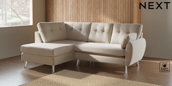7.3.1 Buy Wilson Buttoned Back Medium Corner Chaise - Left Hand Fine Chenille Easy Clean Oyster Metal Tapered - Chrome from the Seasons online shop Click here to use our website with more accessibility support, for example screen readers