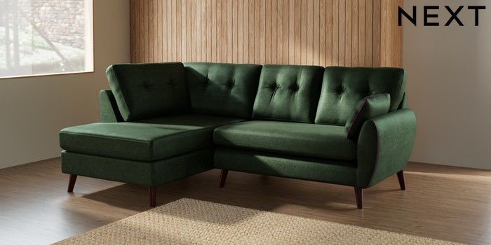 7.3.1 Buy Wilson Buttoned Back Medium Corner Chaise - Left Hand Luxe Chenille Dark Green Retro Tapered - Dark Brown from the Seasons online shop Click here to use our website with more accessibility support, for example screen readers