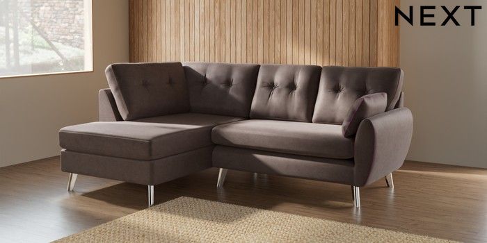 7.3.1 Buy Wilson Buttoned Back Medium Corner Chaise - Left Hand Luxe Chenille Mink Brown Metal Tapered - Chrome from the Seasons online shop Click here to use our website with more accessibility support, for example screen readers