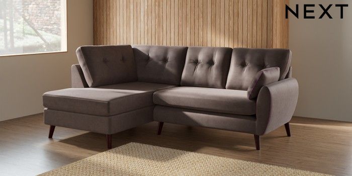 7.3.1 Buy Wilson Buttoned Back Medium Corner Chaise - Left Hand Luxe Chenille Mink Brown Retro Tapered - Dark Brown from the Seasons online shop Click here to use our website with more accessibility support, for example screen readers