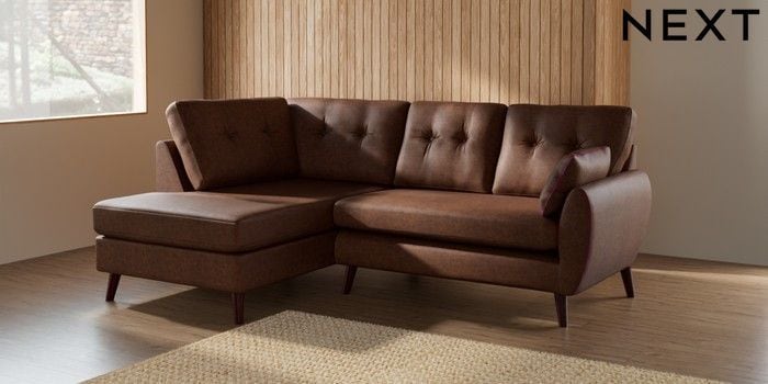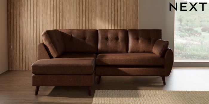 7.3.1 Buy Wilson Buttoned Back Medium Corner Chaise - Left Hand Monza Faux Leather Easy Clean Chestnut Brown Retro Tapered - Dark Brown from the Seasons online shop Click here to use our website with more accessibility support, for example screen readers