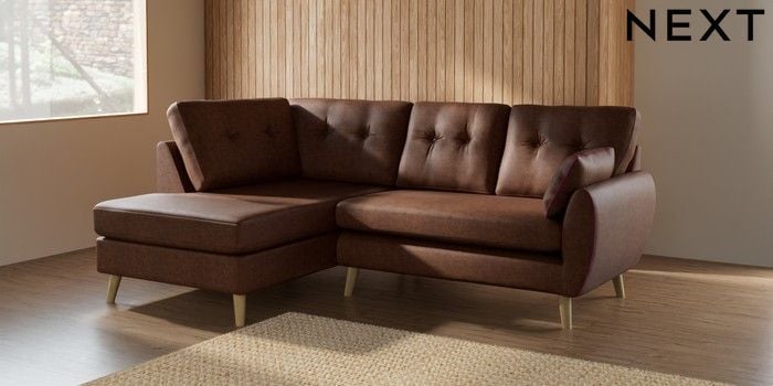 7.3.1 Buy Wilson Buttoned Back Medium Corner Chaise - Left Hand Monza Faux Leather Easy Clean Chestnut Brown Retro Tapered - Light from the Seasons online shop Click here to use our website with more accessibility support, for example screen readers