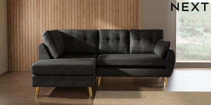 7.3.1 Buy Wilson Buttoned Back Medium Corner Chaise - Left Hand Monza Faux Leather Easy Clean Dark Grey Metal Tapered - Gold from the Seasons online shop Click here to use our website with more accessibility support, for example screen readers
