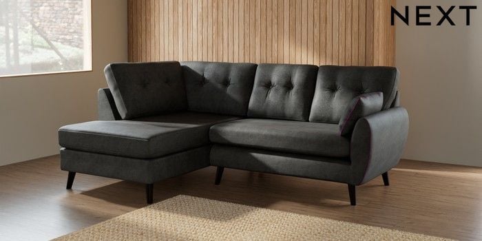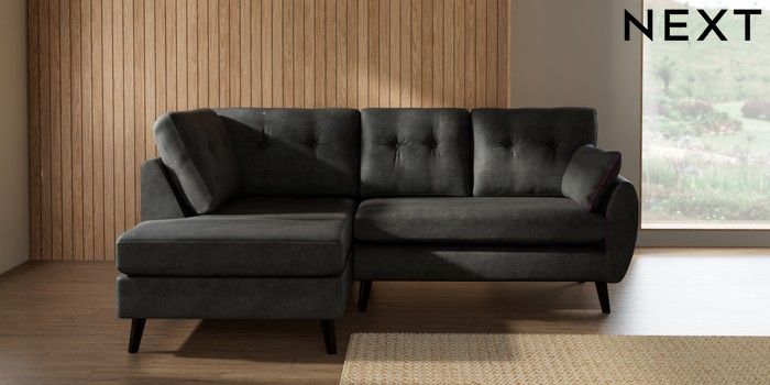 7.3.1 Buy Wilson Buttoned Back Medium Corner Chaise - Left Hand Monza Faux Leather Easy Clean Dark Grey Retro Tapered - Dark from the Seasons online shop Click here to use our website with more accessibility support, for example screen readers