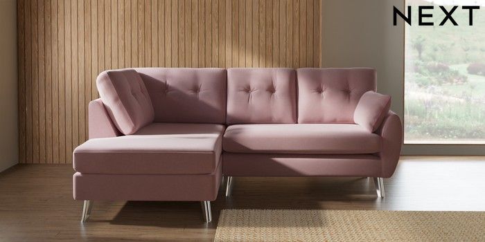7.3.1 Buy Wilson Buttoned Back Medium Corner Chaise - Left Hand Natural Mix Light Rose Pink Metal Tapered - Chrome from the Seasons online shop Click here to use our website with more accessibility support, for example screen readers
