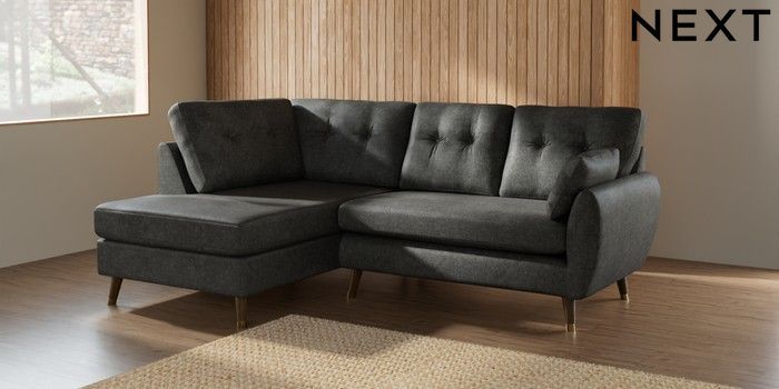 7.3.1 Buy Wilson Buttoned Back Medium Corner Chaise - Left Hand Plush Chenille Dark Grey Low Retro Tapered Metal Cap - Mid from the Seasons online shop Click here to use our website with more accessibility support, for example screen readers