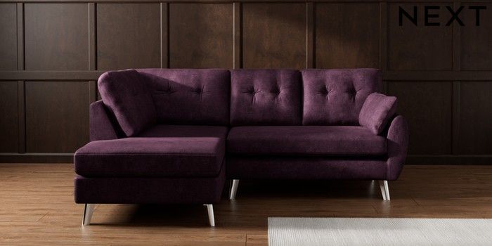7.3.1 Buy Wilson Buttoned Back Medium Corner Chaise - Left Hand Plush Chenille Dark Plum Purple Metal Tapered - Chrome from the Seasons online shop Click here to use our website with more accessibility support, for example screen readers